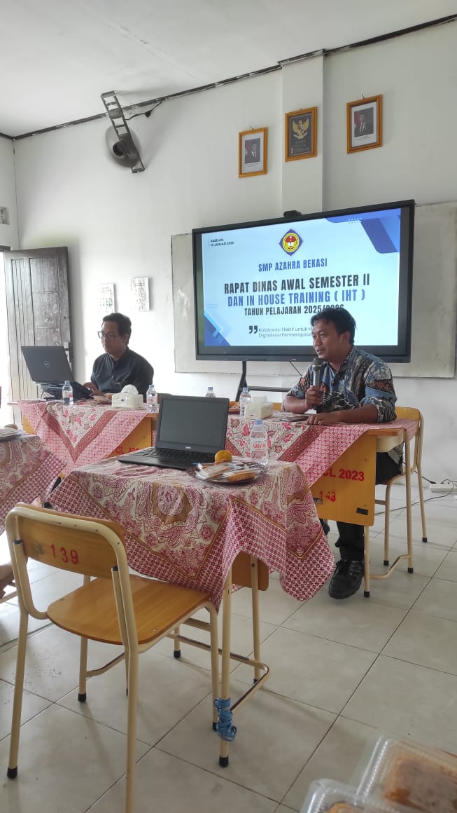 Memasuki awal tahun 2026, SMP Azahra Bekasi terus berkomitmen meningkatkan mutu pendidikan. Hal ini dibuktikan dengan digelarnya kegiatan In House Training (IHT) bertajuk "Transformasi Digital: Menciptakan Pembelajaran Kreatif dan Inovatif" yang berlangsung pada Sabtu, 10 Januari 2026.