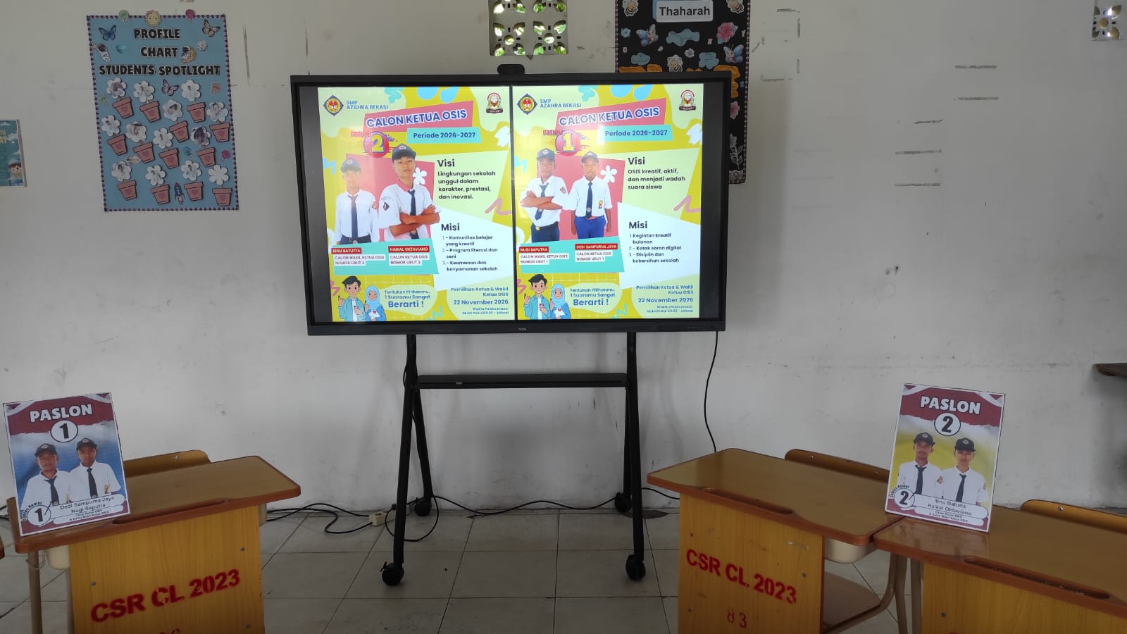 Sebelum sampai di hari pelantikan, seluruh siswa SMP Azahra terlibat dalam Kegiatan Pemilos (Pemilihan Ketua OSIS) yang berlangsung sangat seru. Salah satu momen yang paling mencuri perhatian adalah sesi debat kandidat. Dalam debat tersebut, para calon ketua OSIS saling beradu argumen, menyampaikan visi, misi, serta program kerja unggulan mereka di hadapan seluruh warga sekolah.